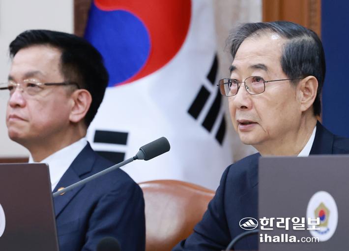 한덕수 대통령 권한대행 국무총리가 25일 정부서울청사에서 열린 국무회의에서 발언하고 있다. 연합뉴스