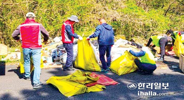 제주시 오라동주민센터(동장 강리선)는 최근 오라동통장협의회 회원 20여 명이 참여해 열안지오름 일대에 무단 방치된 폐기물을 수거하는 특별 환경정비를 실시했다.