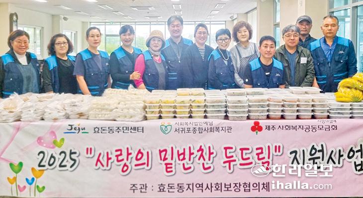 서귀포시 효돈동지역사회보장협의체(공동위원장 김경미·이명소)는 지난 20일 저소득 가구 50곳을 대상으로 사랑의 밑반찬 두드림 지원사업을 진행했다.