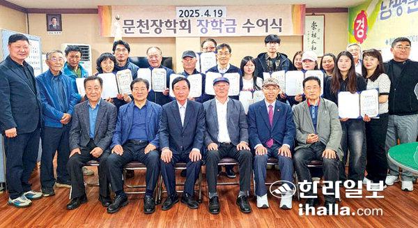 [한라일보] (재)남평문씨제주도종문회 문천장학회(이사장 문창식)는 지난 19일 재단 사무실에서 2025년도 장학생으로 선발된 대학생 10명에게 장학금 1500만원을 전달했다.