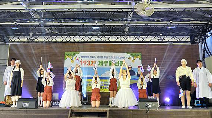 제주 해녀들의 항일 투쟁을 재조명하는 뮤지컬 공연이 지난달 26일 서귀포 올레시장 아케이드 공연장에서 열렸다.