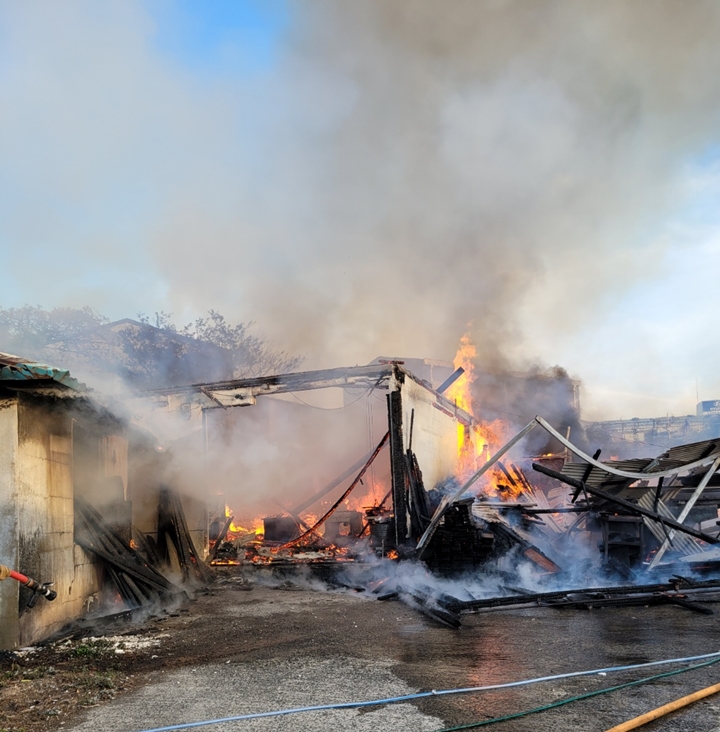 29일 제주시 화북공업단지 내 모 목공소에서 화재가 발생했다. 도소방안전본부 제공