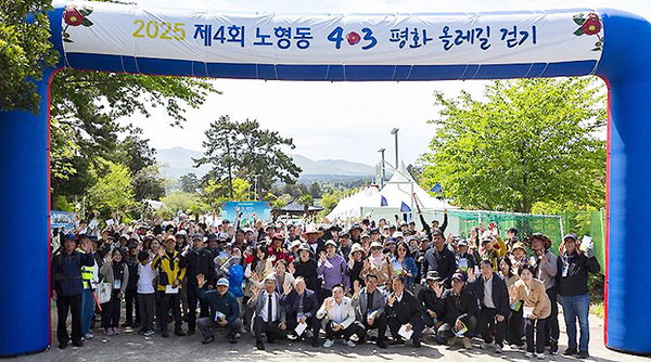 [한라일보] 제주시 노형동(동장 서익천)과 노형동주민자치위원회(위원장 문상수)는 지난달 27일 월산체육공원 일원에서 '2025 제4회 노형동 4·3평화 올레길 걷기' 행사를 개최했다. 행사에는 유족 등 400여 명이 참가했다. 이번 행사는 4·3 당시 단일 마을로는 최대 희생자가 발생한 노형동의 아픈 역사적 현장을 공유함으로써 다시 한번 4·3의 의미를 되새기고 올바른 역사 의식을 고취하기 위해 마련됐다.