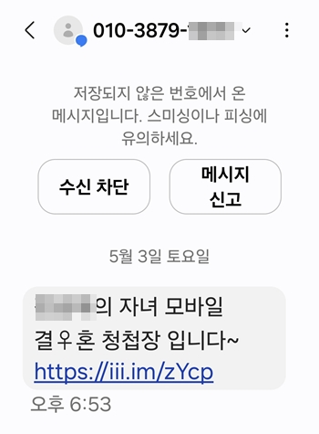 [한라일보] 결혼 성수기를 맞아 모바일청첩장을 가장한 '스미싱(문자결제사기)'가 기승을 부리고 있어 도민들의 각별한 주의가 요구되고 있다.