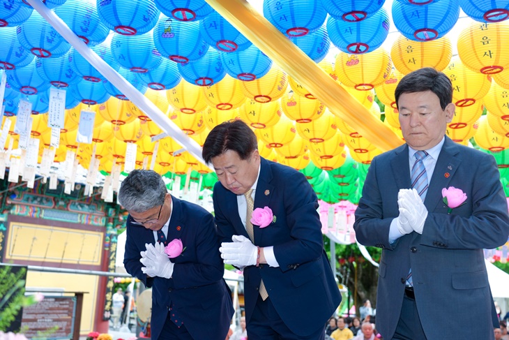 관음사 주지 허운 스님은 봉축사를 통해 "자연재해, 경기침체, 정치적 갈등으로 공동체가 어려움을 겪고 있다"며 "이럴 때일수록 부처님의 가르침처럼 자신만의 안락을 넘어 이웃의 고통을 함께 나누며, 연민과 자비의 마음으로 화합과 연대를 이뤄내야 한다"고 강조했다.