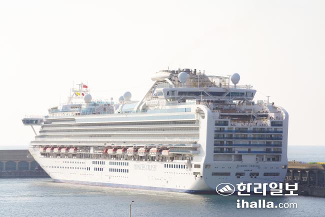 서귀포시 강정항으로 입항하는 크루즈선. 한라일보DB