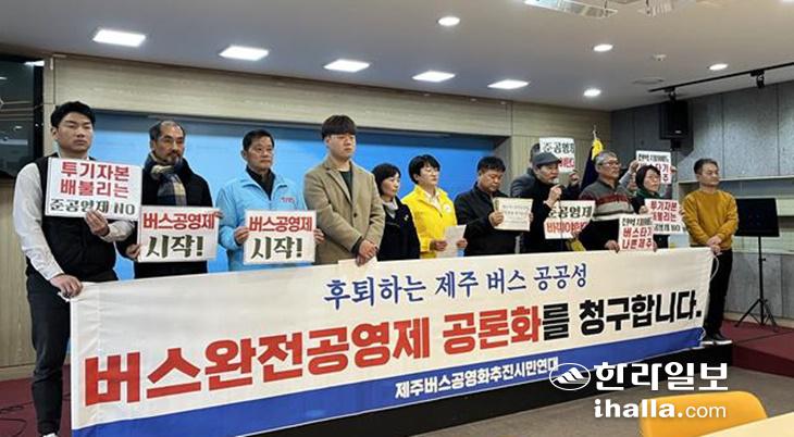 [한라일보] 제주버스완전공영화추진시민연대에서 버스완전공영제에 대한 공론화가 필요하다며 숙의형 정책 개발을 청구했지만 최종 부결됐다.