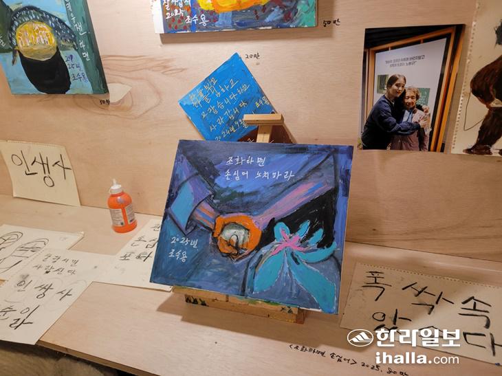 지난 9일 제주시 조천읍 선흘1리에 있는 '선흘그림작업장'에는 할머니의 그림처럼 제주 배경의 넷플릭스 드라마 '폭싹 속았수다'를 주제로 한 그림들로 가득했다. 선흘 그림할망들이 선보이는 전시 '폭싹 속았수다, 똘도 어멍도 할망도'다.