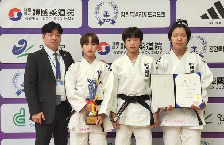 2025 양구평화컵 전국유도대회에서 여자중등부 동메달을 획득한 애월중 선수단. 제주자치도유도회 제공