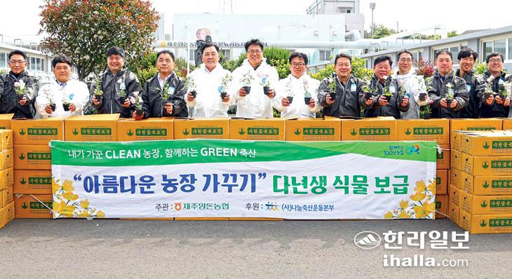 제주양돈농협(조합장 고권진)은 지난 12일 제주양돈농협 가축분뇨공동자원화공장에서 아름다운 농장 가꾸기 지원사업으로 다년생 꽃 나눔행사를 개최했다.