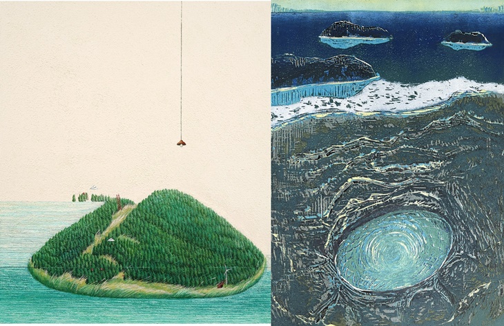 이연정의 '오름, 기억의 선율'(사진 왼쪽)-홍진숙의 '새벽, 동물에서'(사진 오른쪽)