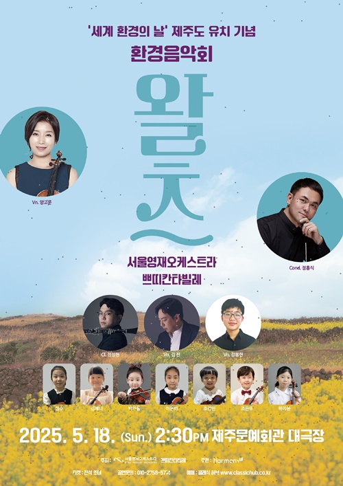 [한라일보] 국내 유스오케스트라인 서울영재오케스트라와 제주 현악앙상블 쁘띠칸타빌레가 이달 18일 오후 2시 30분 제주문예회관 대극장에서 '세계 환경의 날' 행사 제주 유치를 기념하기 위한 환경음악회 '왈츠'를 연다.