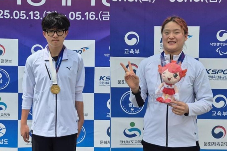 전국장애인학생체전 4회 연속 3관왕에 오른 손세윤(왼쪽)과 2회 연속 2관왕을 차지한 문승미.