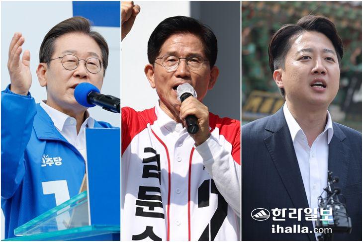 왼쪽부터 민주당 이재명, 국민의힘 김문수, 개혁신당 이준석 대선후보. 연합뉴스