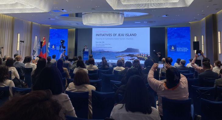 제주특별자치도와 제주관광공사는 지난 19일 몽골 울란바토르에서 유엔세계관광기구(UN Tourism)가 주최한 제19차 국제포럼에서 아시아·태평양 관광정책 개발 및 연수 프로그램을 통해 제주의 우수한 지역관광 모델을 적극 홍보했다. 제주관광공사 제공