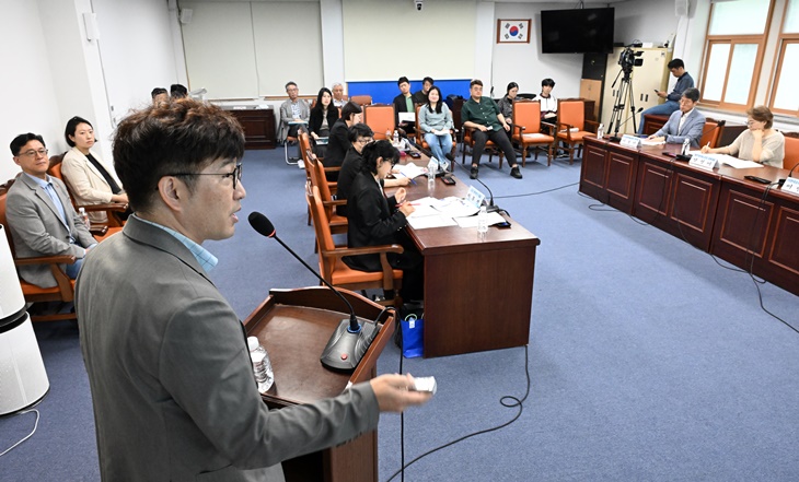 21일 오전 제주특별자치도의회 의사당 1층 소회의실에서 도의회 문화관광체육위원회가 마련한 '제주 민간 소극장 활성화 방안 마련을 위한 정책 간담회'에서 이인복 사단법인 한국소극장협회 부이사장이 주제발표를 하고 있다. 강희만기자