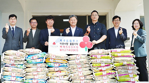 제주시 한림읍 금악리에서 운영하던 사업장을 지난 10일 제주시 애월읍 광령리로 이전한 제주드림포크는 개업 축하의 의미로 전달받은 쌀과 자사에서 유통하는 돼지고기를 어려운 이웃들을 위해 기부했다.