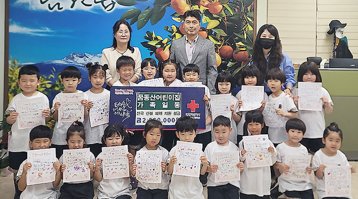 행사 수익금 전액은 최근 산불로 피해를 입은 이재민을 돕기 위한 성금으로 기부됐으며, 아이들이 직접 쓴 손편지도 함께 전달돼 따뜻한 정을 전했다.