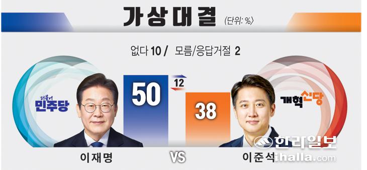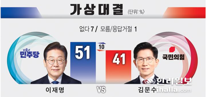 한편 이번 여론조사는 한라일보 등 대한민국지방신문협의회가 여론조사 기관인 한국갤럽에 의뢰해 지난 20~21일 이틀간 만 18세 이상 전국 유권자 1007명을 대상으로 실시했다. 표본은 무선 RDD 표본 프레임에서 무작위로 추출해 전화조사원 인터뷰(CATI) 방식으로 조사했다. 표본오차는 95% 신뢰수준에 ±3.1%포인트, 응답률은 15.8%였다. 자세한 사항은 중앙선거여론조사심의위원회 홈페이지를 참조하면 된다.
