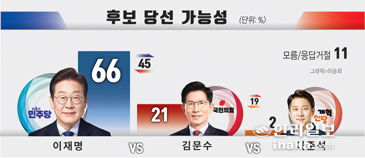 또, 60대(43%), 70세 이상(45%)에서 이재명 후보를 앞섰다.