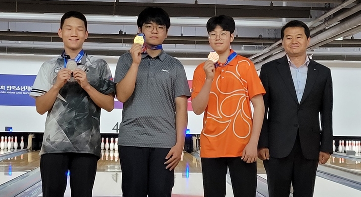 12년만에 볼링 금 이상협(가운데).