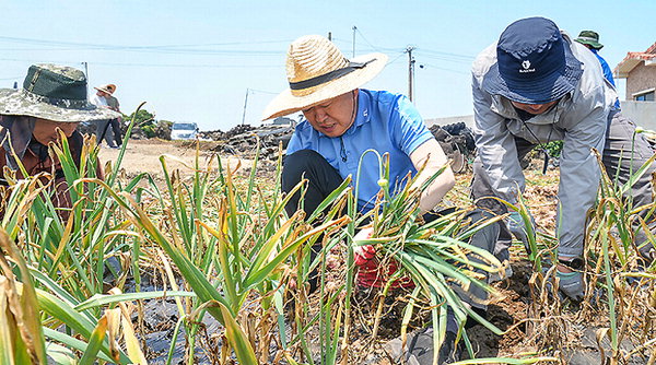 [한라일보] 오영훈 제주도지사는 26일 제주도 농축산식품국과 농업기술원 직원, 농협 관계자 등 30여 명과 함께 제주시 구좌읍 김녕리에 있는 고령 농가를 찾아 마늘 수확 일손 돕기에 동참했다.