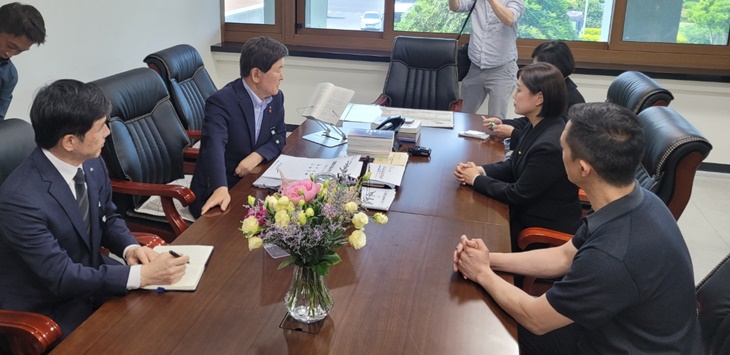 27일 제주도교육청 교육감실에서 국회 교육위원회 소속 더불어민주당 백승아 의원과 김광수 제주특별자치도교육감이 면담을 하고 있다.