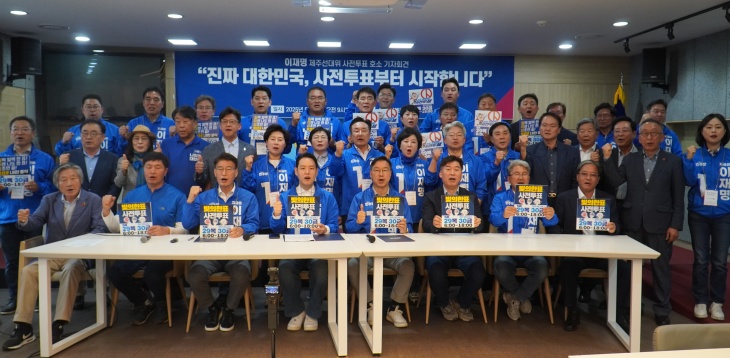 이재명 제주선대위는 "사전투표에 제주와 대한민국의 미래를 위해 꼭 투표해 달라"며 "유권자의 힘으로 '진짜 대한민국'을 만들어 달라"고 호소했다.