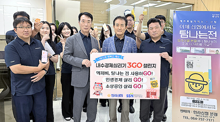 제주특별자치도와 제주도소상공인연합회가 민생경제 활성화를 위해 진행하는'3GO 챌린지'에 한라신협 강정신 이사장이 동참했다. '3GO 챌린지'는 민생경제 살리고(GO), 소상공인 살리고(GO), 먹깨비·탐나는전 사용하고(GO)의 의미를 담아 도민과 소상공인이 상생하는 경제 생태계를 만들어가자는 취지로 기획됐다.