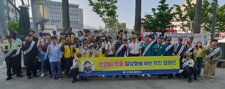 서귀포경찰서는 지난 21일과 27일 중앙로터리 일대에서 '안전띠 착용 일상화를 위한 착한 캠페인'을 실시했다. 이번 캠페인에는 서귀포시, 자치경찰단 서귀포지역경찰대와 민간 안전단체가 함께 참여했다.