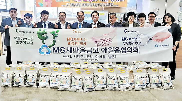 곽지·서제주·우리·한마음·납읍 새마을금고로 구성된새마을금고 애월읍협의회(회장 김태범)는 새마을금고 지역상생의 날(5월 25일)을 맞아 지난 23일 제주시 애월읍사무소(읍장 김태헌)를 방문해 쌀 500㎏(200만원 상당)을 전달했다.