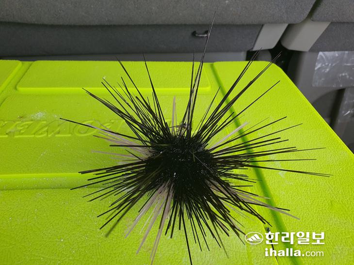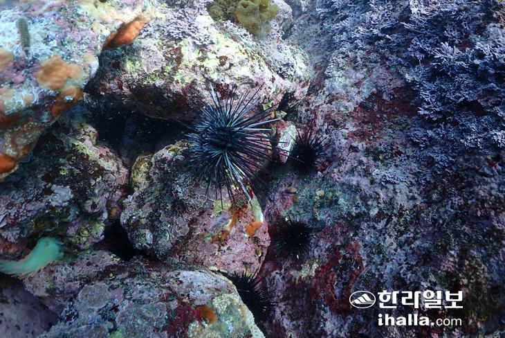 최근 일과리 마을어장 암반지역에 확산되고 있는 긴침성게의 모습.