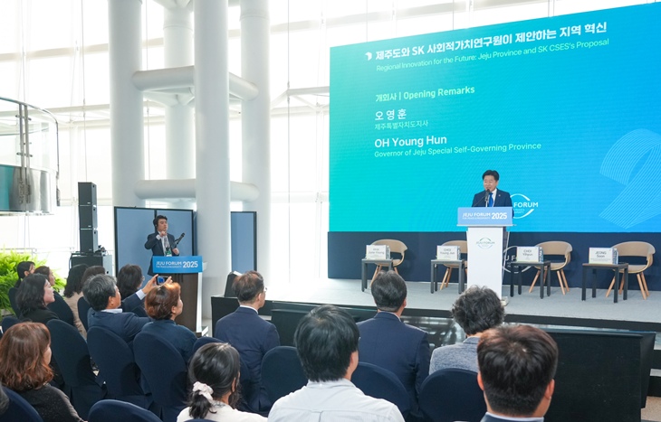 제주특별자치도와 SK사회적가치연구원은 29일 제주국제컨벤션센터에서 열리고 있는 '2025제주포럼' 세션으로'제주도와 SK사회적가치연구원이 제안하는 지역혁신'을 주제로 활발한 토론을 진행했다.
