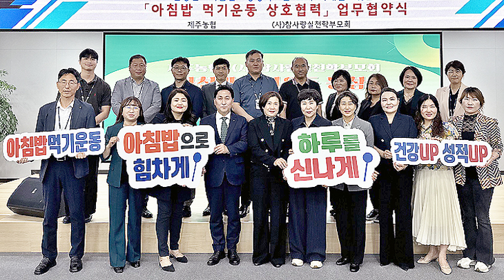 제주농협(본부장 고우일)과 (사)참사랑실천학부모회(회장 홍영숙)는 지난 28일 제주농협 대회의실에서 '아침밥먹기 운동 동참을 위한 업무협약'을 체결했다.