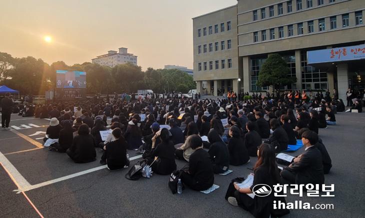 [한라일보] 제주의 한 중학교에서 숨진 교사를 기리는 추모제가 30일 오후 제주특별자치도교육청 앞마당에서 열렸다.