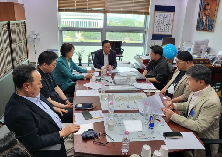 지난 29일 국회 이종배 의원실에서 열린 국민의힘 중앙선거대책위원회 총괄특보단과 대한민국운동선수 학부모연대의 체육정책 간담회에서 참석자들이 의견을 교환하고 있다.