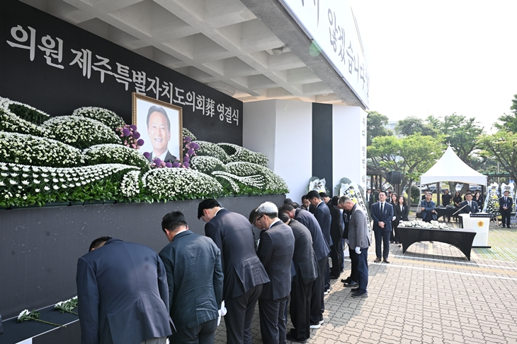 김광수 교육감도 추도사를 통해 "투병 중에도 열정적인 의정활동을 통해 도민들의 삶의 질 향상을 위해 마지막 순간까지도 봉사를 해오신 의원님께 경의를 표한다"며 "의원님의 헌신과 봉사는 우리들 마음 속에 영원히 남아 있을 것"이라고 말했다.