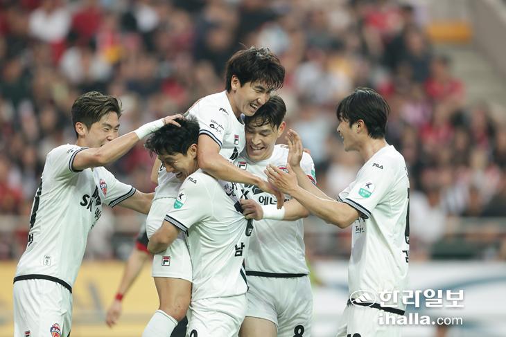 제주SK는 31일 오후 서울월드컵경기장에서 열린 FC서울과의 '하나은행 K리그1 2025' 17라운드 원정경기에서 유인수의 멀티골과 이창민의 시즌 1호골을 몰아치며 3-1로 승리했다. 제주는 2022시즌 이후 2시즌 만에 서울 원정에서 승리하는 기쁨도 맛봤다.