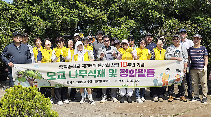 함덕중학교 제35회 동창회(회장 이유진)는 지난 1일 모교에서 회원 30여 명이 참여한 가운데 동창회 창립 10주년 기념 식수 행사를 가졌다.