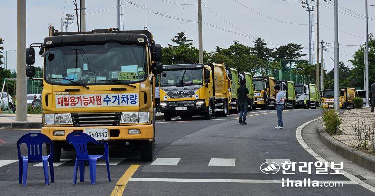 이날 제주시 지역의 클린하우스에서 가연성 쓰레기를 수거하는 차량 29대 중 16대는 진입로 봉쇄 전인 오전 8시 전에 센터로 진입했다. 하지만 나머지 차량과 서귀포시 지역의 쓰레기 수거 차량은 진입로에서 계속 대기하다 오전 11시쯤 차량을 돌려 각각 차고지로 향했다. 센터에는 서귀포시 동 지역 일부와 성산·표선에서 발생하는 가연성 쓰레기도 9대의 수거 차량으로 반입 처리되고 있다.