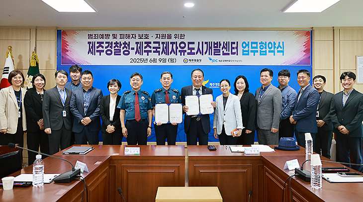 제주경찰청과 제주국제자유도시개발센터(JDC)는 9일 제주경찰청에서 사회적 약자인 여성·청소년·외국인 대상 범죄예방 및 피해자 지원을 위한 업무협약을 체결했다.