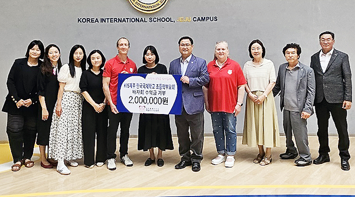 KIS제주 한국국제학교 초등학생들과 학부모회는 최근 교내에서 진행된 바자회를 통해서 모인 수익금 200만원을 (사)제주특별자치도백혈병소아암협회(협회장 손태일)에 기부했다.