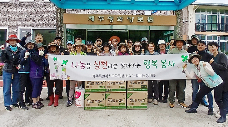 제주특별자치도교육청 소속 봉사단체인 누리보듬봉사회(회장 김순영)는 지난 7일 제주시 소재 제주평화양로원을 방문해 봉사활동을 진행했다.