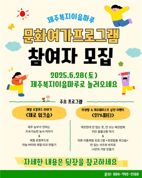 제주도 복지이음마루가 지속가능성의 가치를 나누는 문화여가 프로그램 참여자를 모집한다.