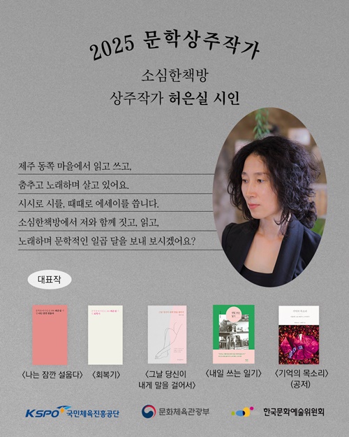 제주시 구좌읍 종달리에 위치한 독립서점 소심한 책방이 한국문화예술위원회가 주관하는 2025년 문학상주작가 지원사업에 선정됐다. 이에따라 허은실 시인을 상주작가로 초청해 문학 창작 프로그램과 독서모임을 운영한다.