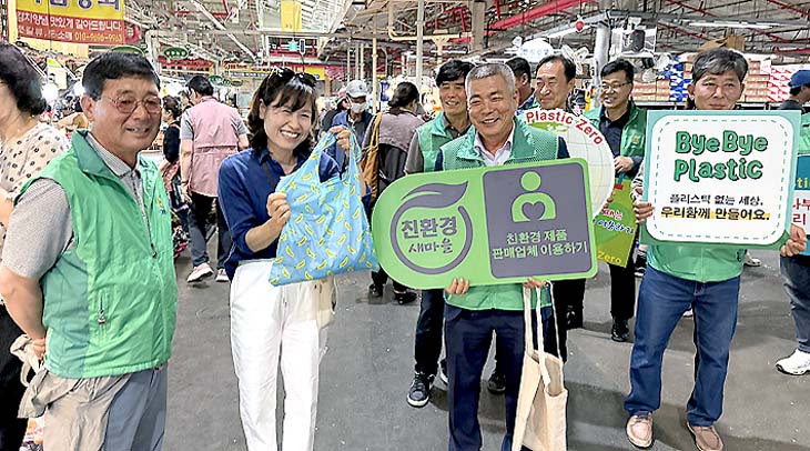 이날 장바구니 나눔과 친환경 판매업체 이용 등 홍보활동을 벌이며 녹색새마을운동에 앞장섰다.