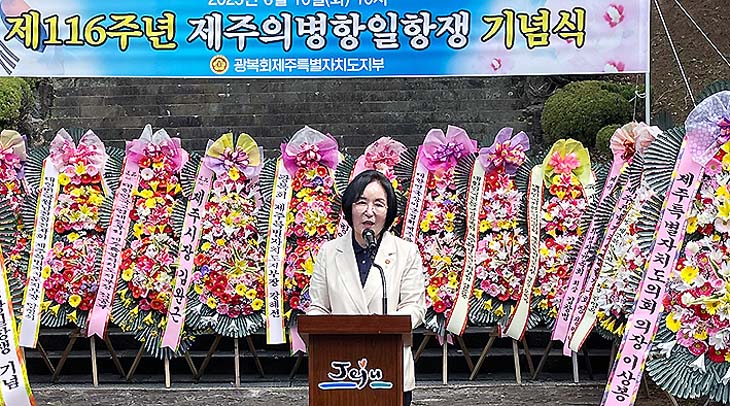 [한라일보] 광복회제주도지부(지부장 강혜선)는 지난 10일 제주시 사라봉 모충사에서 제116주년 제주의병항일항쟁기념식을 개최했다.