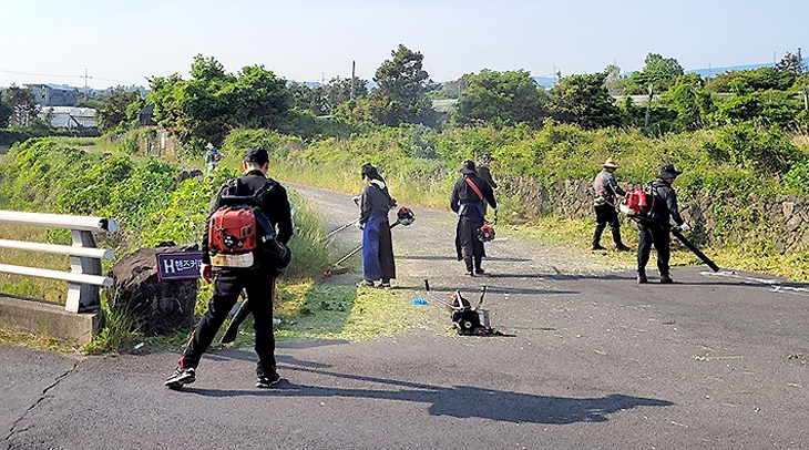 제주시 도련1동 청년회(회장 김원종)는 지난 7일 도련1동 마을안길 삼수천 일대에서 풀베기 등 환경정비 활동을 실시했다.