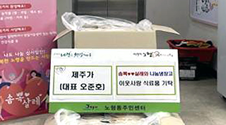 제주가(대표 오준호)는 지난 9일 제주시 노형동주민센터(동장 서익천) 1층에 운영하는 '솜뽁 살레와 냉장고' 창구로 50만원 상당의 냉동고등어를 전달했다.