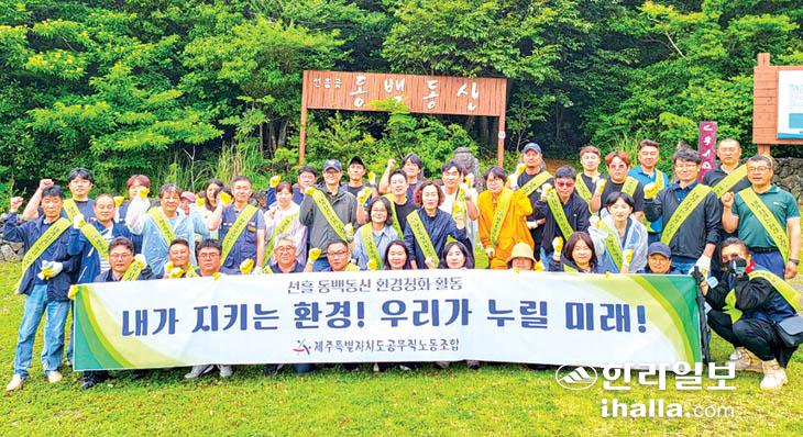 제주특별자치도공무직노동조합(위원장 이광민)은 12일 제주시 조천읍 선흘리 동백동산 일원에서 공무직노조 집행부·대의원들과 환경정화 활동을 했다. 노조는 이날 조합발전 방향을 모색하는 시간도 가졌다.